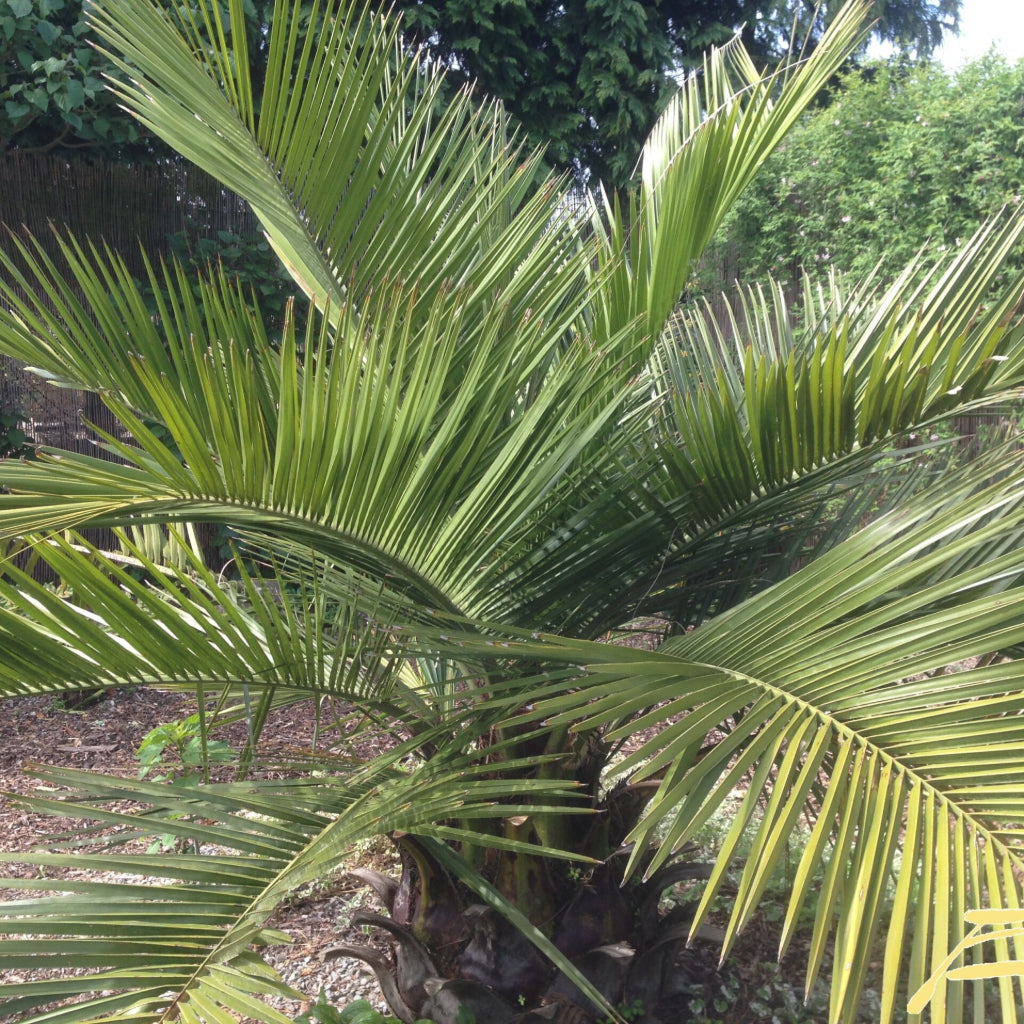 De Chileense Wijnpalm ( Jubaea chilensis ) is een van de meest indrukwekkende en robuuste palmen ter wereld. Hij staat bekend om zijn dikke, gladde grijze stam en zijn prachtige, gedeerde groene bladeren. Oorspronkelijk afkomstig uit Chili, is deze palm verrassend winterhard en kan hij temperaturen tot -12°C verdragen. Met zijn tropische uitstraling is hij een echte blikvanger in elke tuin of grote pot.